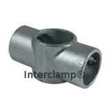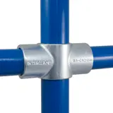 Junta de 90 °, utilizada a menudo entre rieles medios y montantes en sitios nivelados y con frecuencia emparejados con el tipo 101 o 104. El tubo pasante (vertical en la foto) no se puede unir dentro del accesorio.