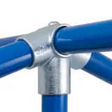 Normalmente se utiliza para formar estructuras de tejado junto con el tipo 185, con un ángulo de 27½°. El tubo de cumbrera que discurre longitudinalmente con el tejado no puede unirse dentro del herraje (sólo hay un tornillo prisionero actuando sobre este tubo, que está oculto en la foto).